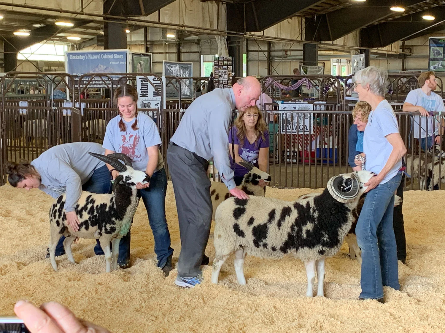 Back to the barn. Time for the show. Farm Club members, Brenda and Stephany, had offered to help, and Mary became the show photographer. (Thanks to her for all these sheep show photos.)